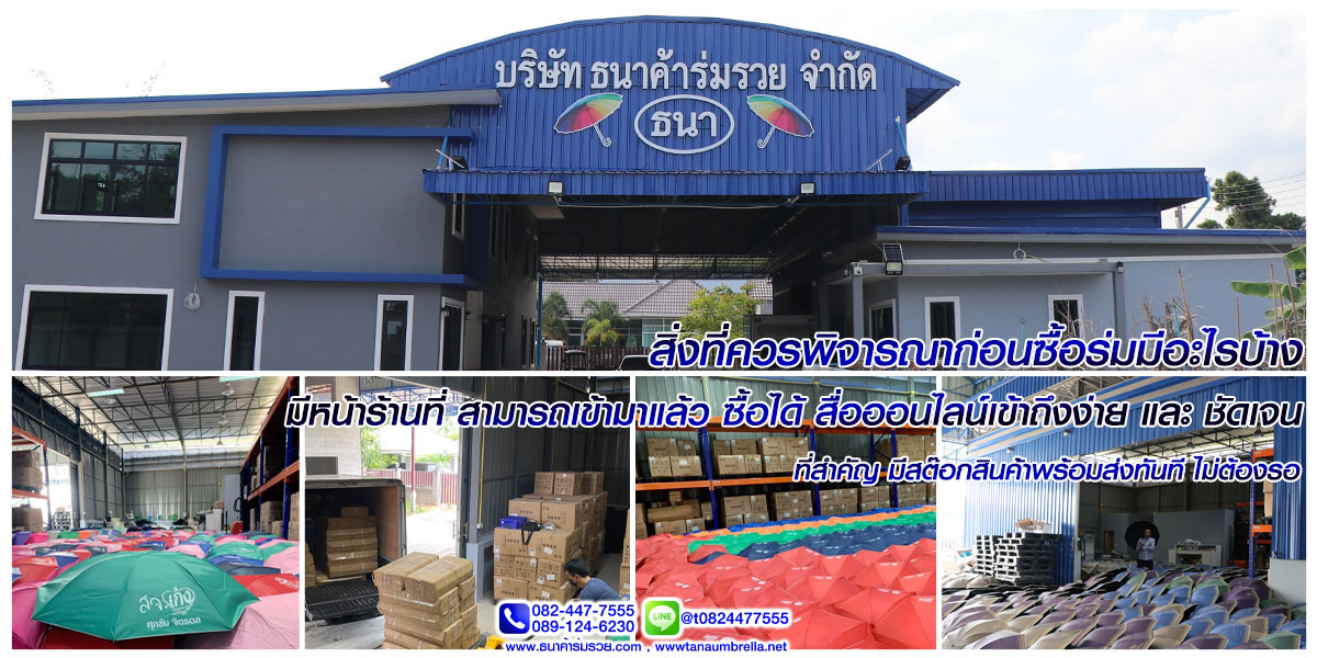 - การดูแลรักษา การดูแลรักษาร่มเป็นสิ่งสำคัญ เพื่อให้ร่มมีอายุการใช้งานที่ยาวนาน ควรเก็บรักษาในที่แห้งและระบายอากาศ
