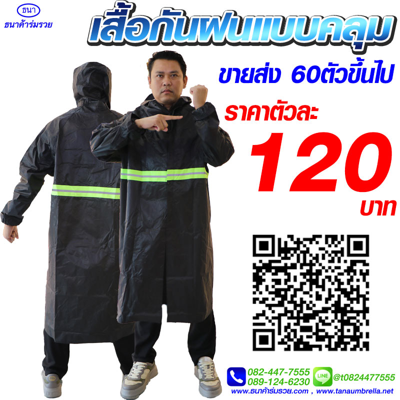 เสื้อกันฝน ชุดกันฝน แบบคลุม สีดำ